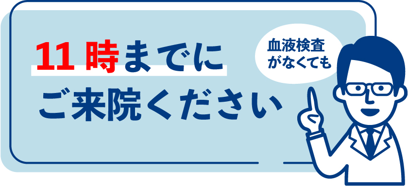 血液検査がある場合は、お食事を摂らずに午前11時までにお越しください。